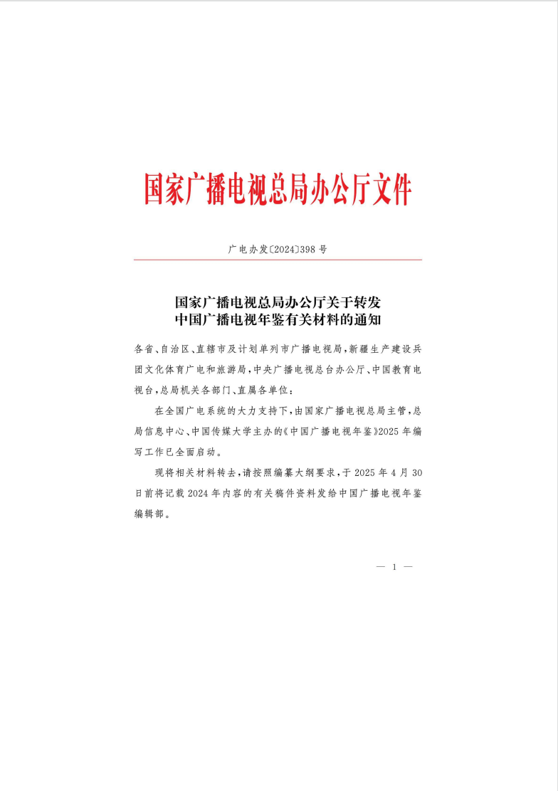 国家广播电视总局《中国广播电视年鉴》(2025)“全国广电媒体融合优秀案例及示范机构”公示通知