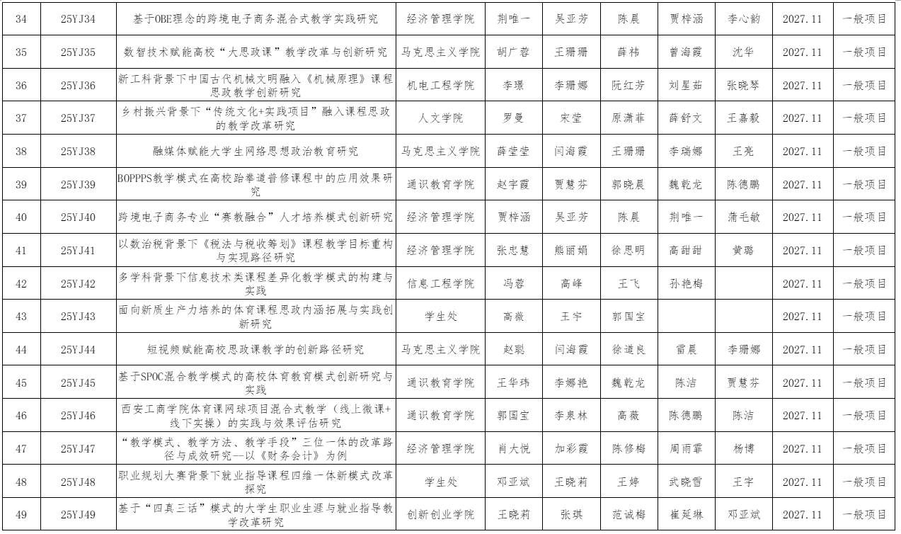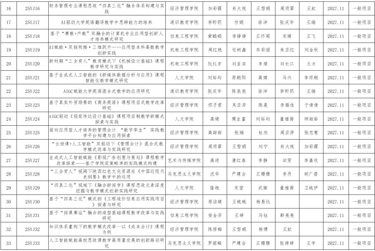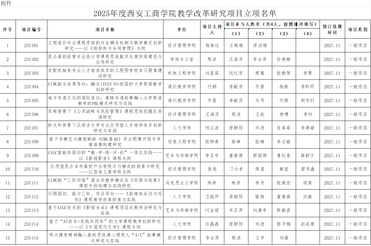 附件:2025年度澳门网投官网教学改革研究项目立项名单