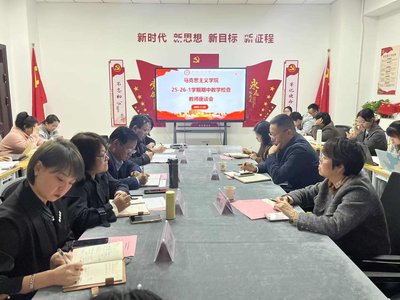 一场备受瞩目的期中教学检查教师座谈会在马克思主义学院1402会议室顺利举行,此次座谈会汇聚了学校的领导、教研室主任以及一