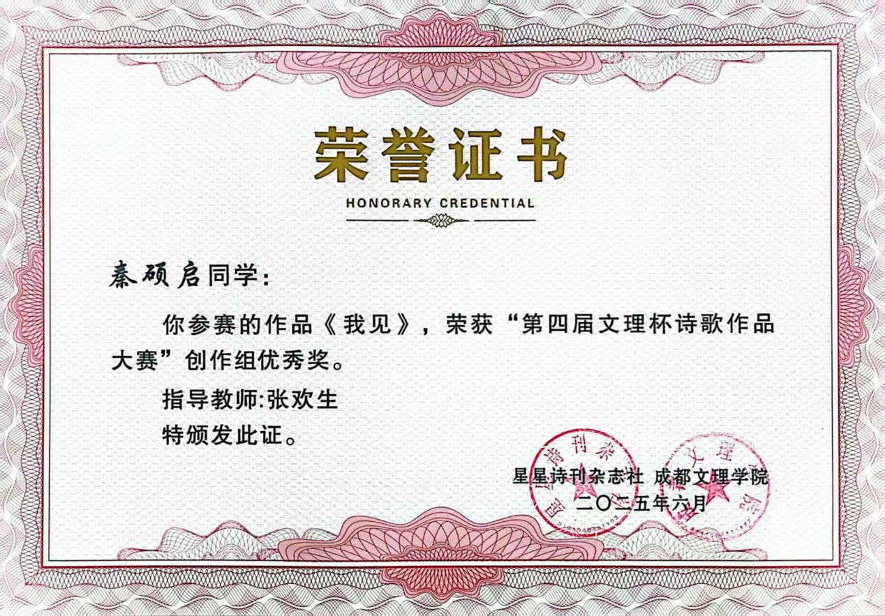 第四届“文理杯”诗歌作品大赛圆满落幕,创作组优秀奖一项;鉴赏组三等奖一项、优秀奖两项;朗诵组三等奖一项。