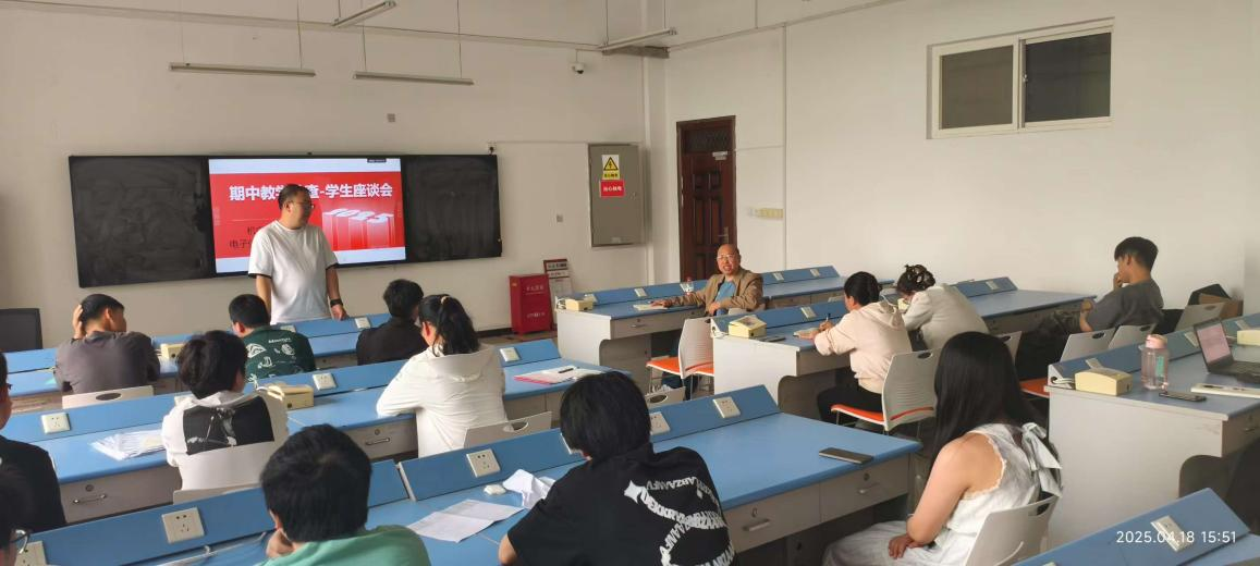 为深入了解学生学习状况,机电工程学院电子信息与通信工程系在实验楼404召开了期中教学学生座谈会,会议由电子信息与通信