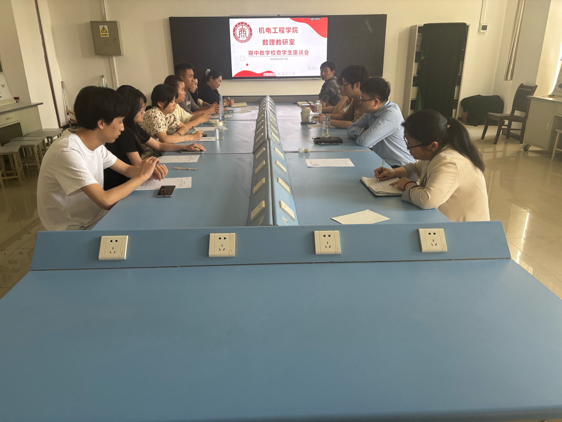 为持续提升教学水平,及时掌握学生的学习需求,机电工程学院数理教研室在实验楼401室进行了期中教学检查学生座谈会,此次