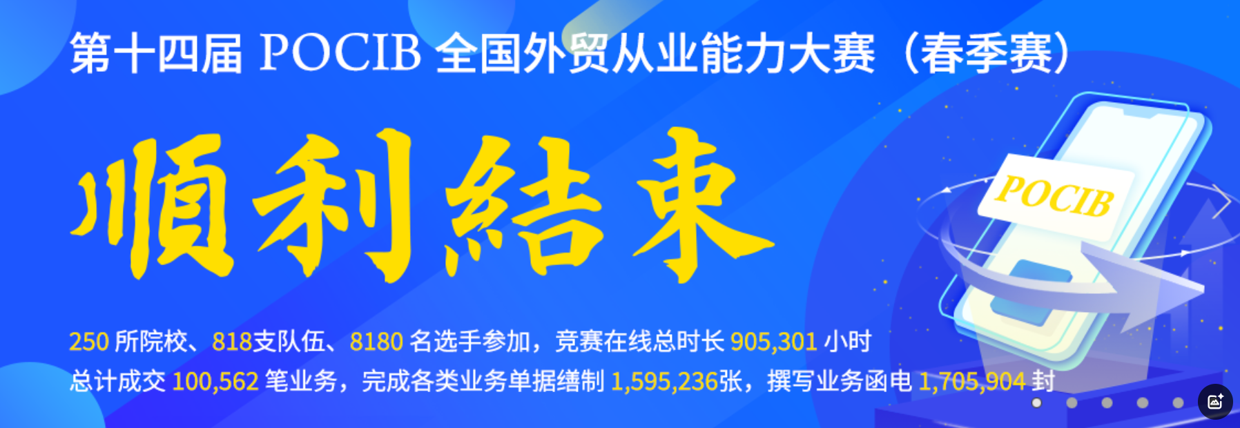 第十四届POCIB全国大学生外贸从业能力大赛(秋季赛)完美谢幕,网投经济与管理学院在数字经济产业学院的大力支持下,组成6