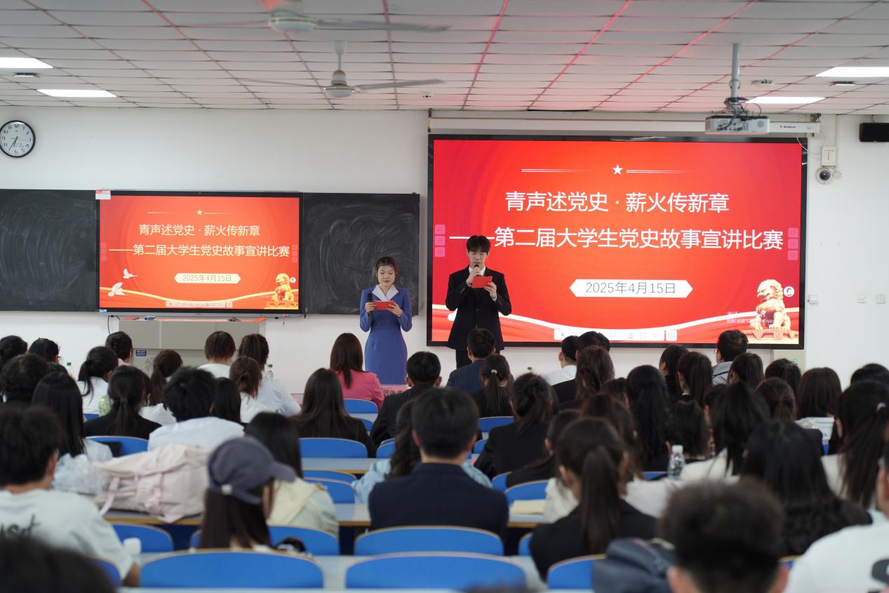 马克思主义学院主办的“青声述党史·薪火传新章——第二届大学生党史故事宣讲比赛”在教学楼2213教室隆重举行。