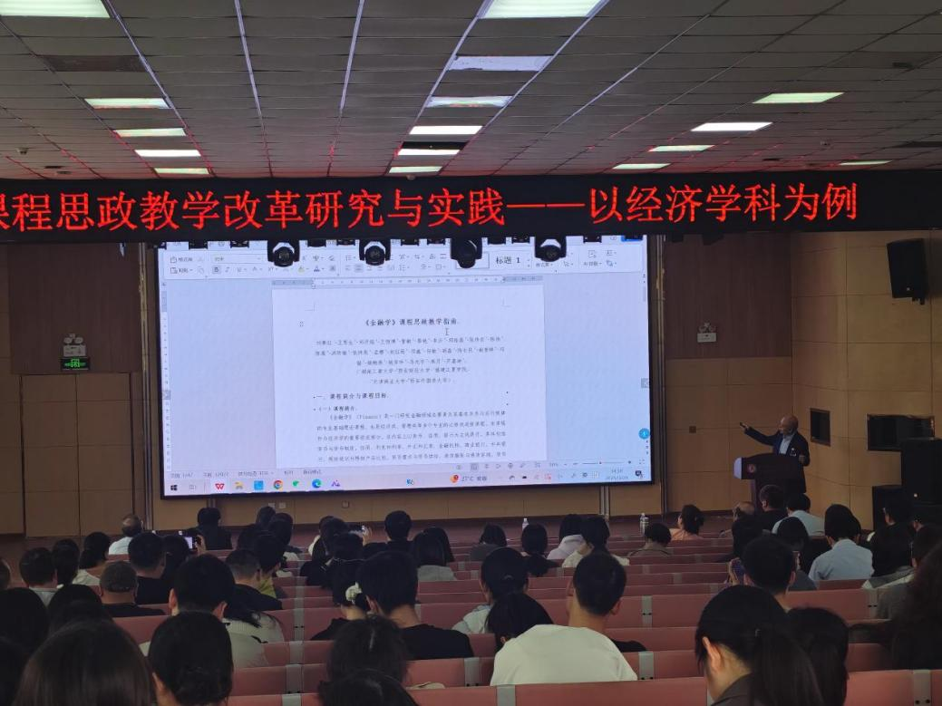 一场关于课程思政教学研究与实践的报告会在学术报告厅举行,旨在深入探讨如何在各专业教学中融入思政元素,构建了涵盖家国情怀、