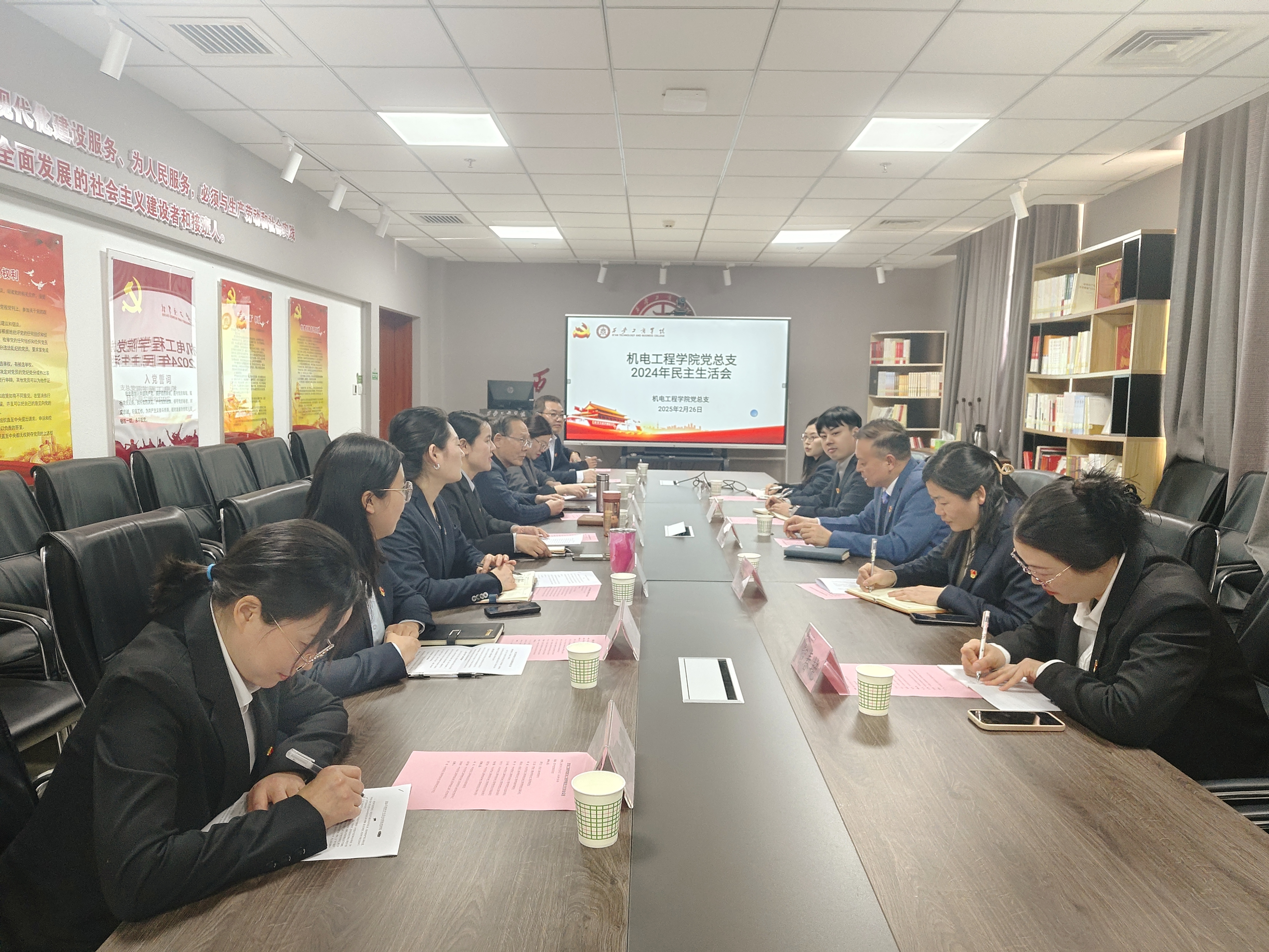 机电工程学院党总支召开2024年度民主生活会,学院领导班子全体成员及总支委员参加会议,深刻进行对照检查,认真对照查摆问题
