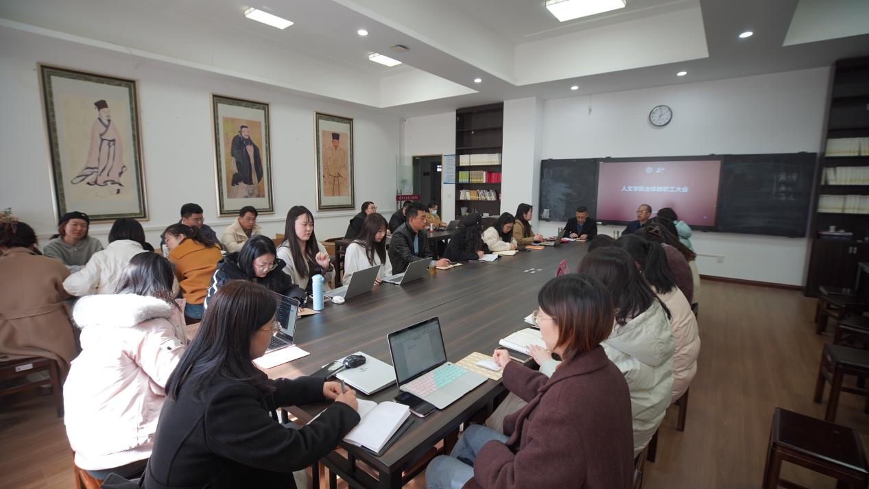 为进一步提升本科教育教学质量,扎实推进本科教学合格评估工作,人文学院全体教职工齐聚一堂, 【全体参会教师】 会议