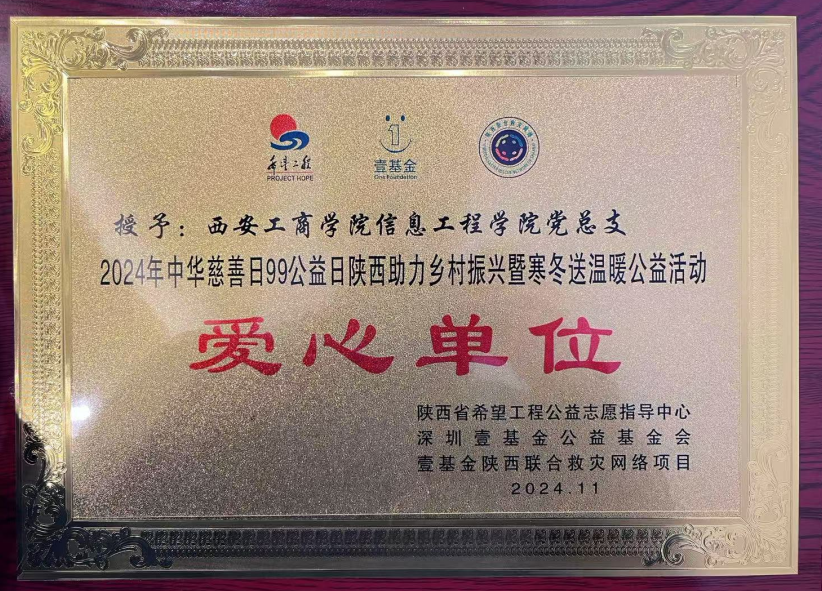 信息工程学院党总支被陕西省希望工程公益志愿指导中心、陕西省青少年发展基金会、深圳壹基金公益基金会、陕西联合网络项目联合授