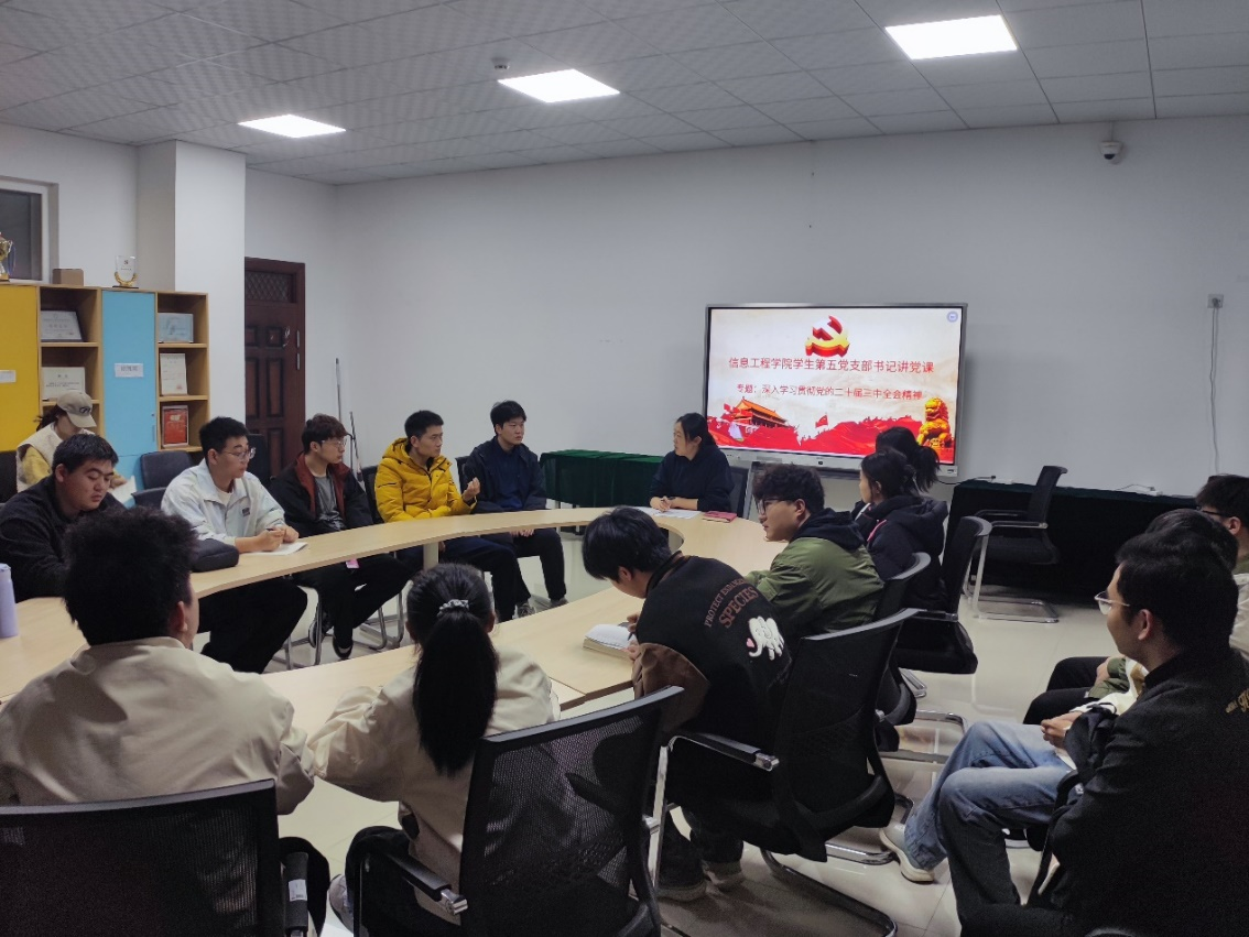 为深入推动党纪学习教育走深走实,在党的二十届三中全会胜利闭幕后,信息工程学院学生第五党支部全体党员参加, 会议全体