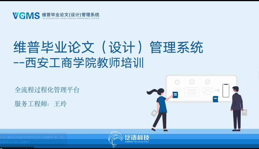 按照教育部关于《本科毕业论文(设计)抽检办法(试行)》的相关要求,网投聘请维普王玲工程师对毕业设计(论文)系统进行线上培