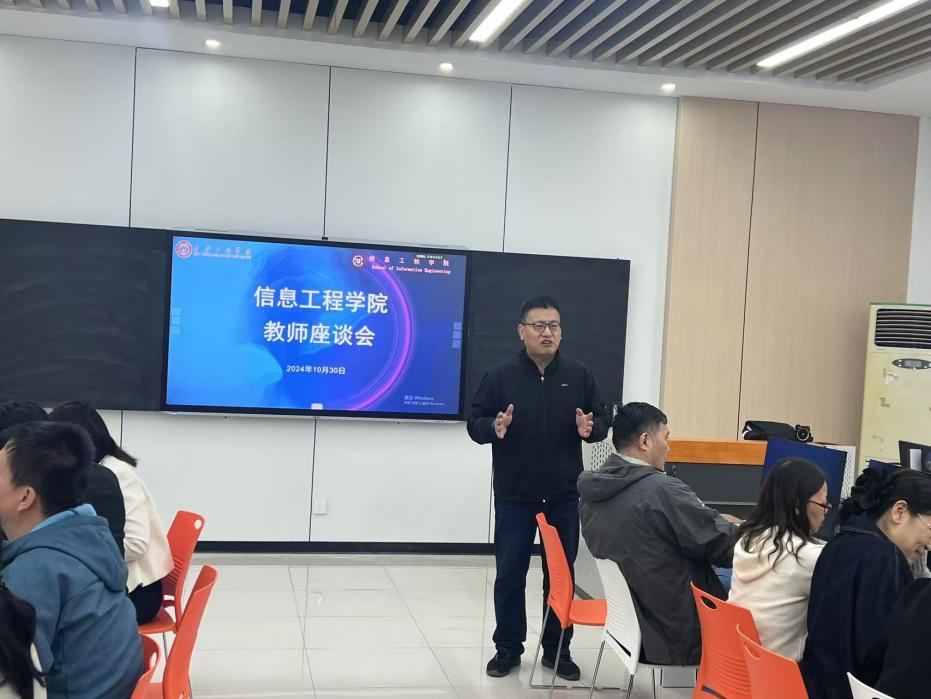 加强教师与学院的互动交流,信息工程学院在实验楼303室召开了教师座谈会,本次会议由信息工程学院教学副院长王飞主持,教师们