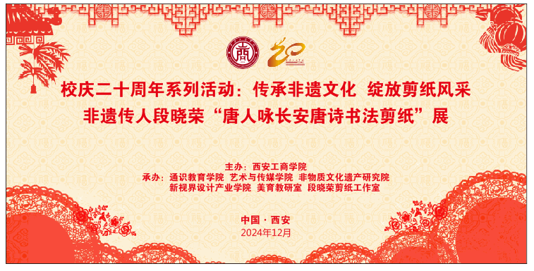 绽放剪纸风采”为主题的校庆二十周年系列活动之非遗传人段晓荣“唐人咏长安”唐诗书法剪纸展。
